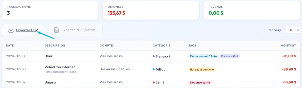 Ce guide explique comment préparer un rapport fiscal avec les filtres, la recherche avancée et l’export CSV.